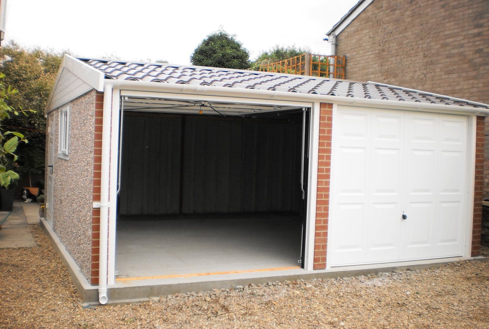 The standard apex garage features a 12.5 degree pitched roof with fibre cement roof sheets.
